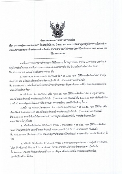 ประกาศผู้ชนะการเสนอราคา ซื้อวัสดุสำนักงาน จำนวน ๑๔ รายการ ประจำศูนย์ปฏิบัติการร่วมในการช่วยเหลือประชาชนขององค์กรปกครองส่วนท้องถิ่น อำเภอเถิน จังหวัดลำปาง ประจำปีงบประมาณ พ.ศ. ๒๕๖๘ โดยวิธีเฉพาะเจาะจง