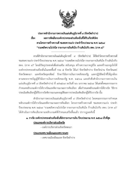 #อบตแม่วะ #อำเภอเถิน #จังหวัดลำปาง #บริหารงานโปร่งใส #รายงานการเงินทันใจ #สตงภาค9 #รางวัลระดับจังหวัด #องค์กรปกครองส่วนท้องถิ่น