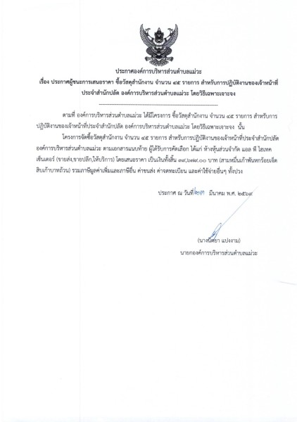 📣 ประกาศผู้ชนะการเสนอราคา ซื้อวัสดุสำนักงาน จำนวน ๔๕ รายการ สำหรับการปฏิบัติงานของเจ้าหน้าที่ ประจำสำนักปลัด องค์การบริหารส่วนตำบลแม่วะ โดยวิธีเฉพาะเจาะจง