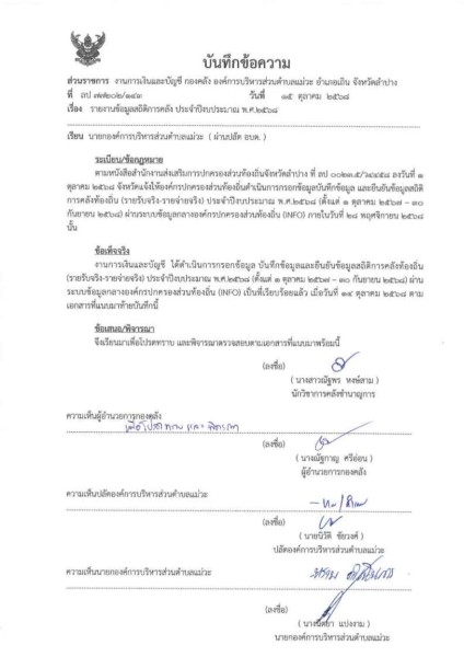 รายงานสถิติการคลังท้องถิ่น (รายรับจริง-รายจ่ายจริง) ประจำปีงบประมาณ พ.ศ.2568 (ตั้งแต่ 1 ตุลาคม 2567 – 30 กันยายน 2568)