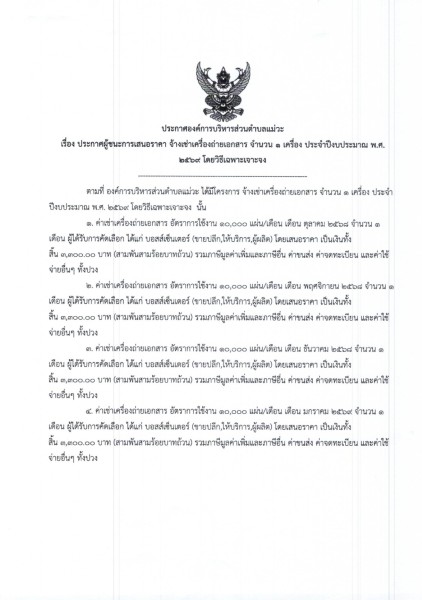 ประกาศผู้ชนะการเสนอราคา จ้างเช่าเครื่องถ่ายเอกสาร จำนวน ๑ เครื่อง ประจำปีงบประมาณ พ.ศ.๒๒๕๖๙ โดยวิธีเฉพาะเจาะจง
