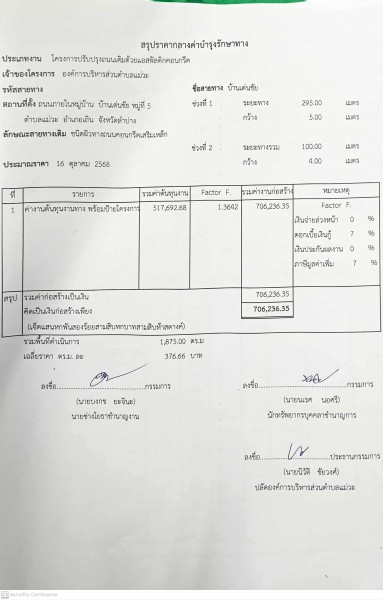 ประกาศราคากลาง โครงการปรับปรุงถนนเดิมด้วยแอสฟัลติกคอนกรีต