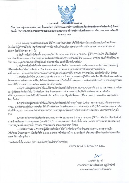 📣 ประกาศผู้ชนะการเสนอราคา ซื้อแบบพิมพ์ เพื่อใช้ดำเนินการโครงการจัดการเลือกตั้งสมาชิกสภาท้องถิ่นหรือผู้บริหารท้องถิ่น (สมาชิกสภาองค์การบริหารส่วนตำบลแม่วะ และนายกองค์การบริหารส่วนตำบลแม่วะ) จำนวน ๗ รายการ โดยวิธีเฉพาะเจาะจง