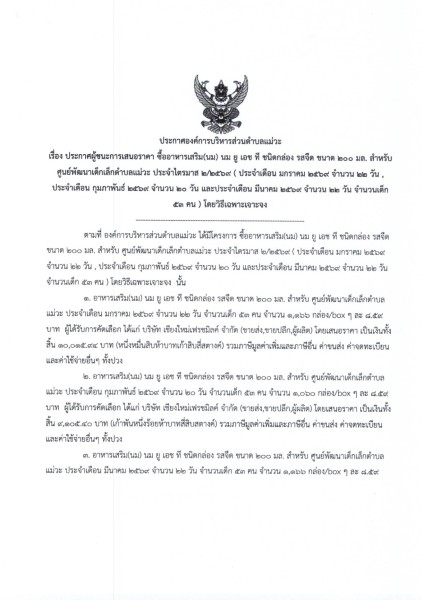 📣 ประกาศผู้ชนะการเสนอราคา ซื้ออาหารเสริม(นม) นม ยู เอช ที ชนิดกล่อง รสจืด ขนาด ๒๐๐ มล. สำหรับศูนย์พัฒนาเด็กเล็กตำบลแม่วะ ประจำไตรมาส ๒/๒๕๖๙ ( ประจำเดือน มกราคม ๒๕๖๙ จำนวน ๒๒ วัน ,ประจำเดือน กุมภาพันธ์ ๒๕๖๙ จำนวน ๒๐ วัน และประจำเดือน มีนาคม ๒๕๖๙ จำนวน ๒๒