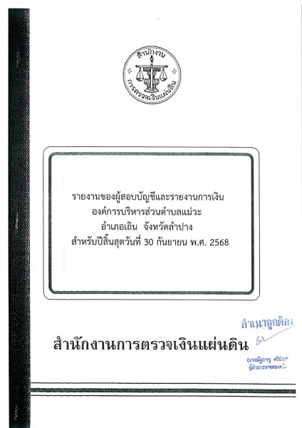 รายงานผลการตรวจสอบรายงานรายงานการเงิน สำหรับปีสิ้นสุดวันที่ 30 กันยายน 2568 จากสำนักตรวจเงินแผ่นดินจังหวัดลำปาง ตามพระราชบัญญัติวินัยการเงินการคลังของรัฐ พ.ศ. 2561 มาตรา 72